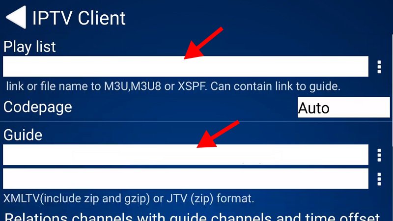 Step 3: In the “Playlist” section, type in your M3U URL. Type in your EPG URL in the “Codepage” box.